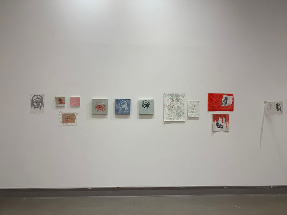 This semester, I treated my studio work as an extended study of surfaces as records of contact. I worked through the question of how an artwork might hold the physical evidence of its own making without defaulting to the hierarchy of front and back. Transfer drawing became the center of this inquiry. Repeated impressions of a self-portrait gradually displaced resemblance and allowed the surface to behave as a field of accumulated events. What remained on the paper was not an image in a traditional sense. It was the result of pressure, friction, and touch. At a certain stage, the work no longer announced a proper orientation.